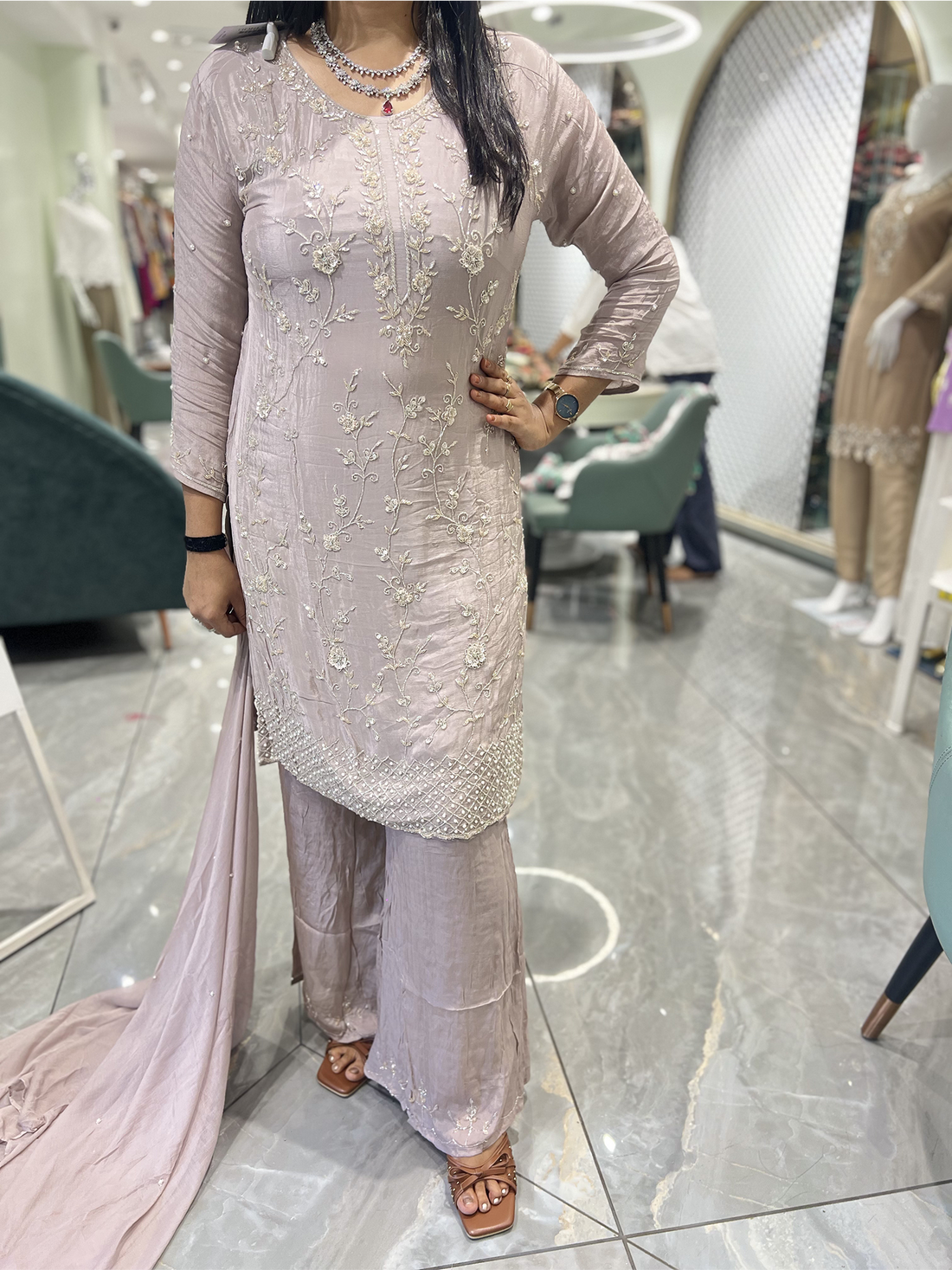 This lavender net gown is crafted with fine sequin with moti detailing. It is designed...