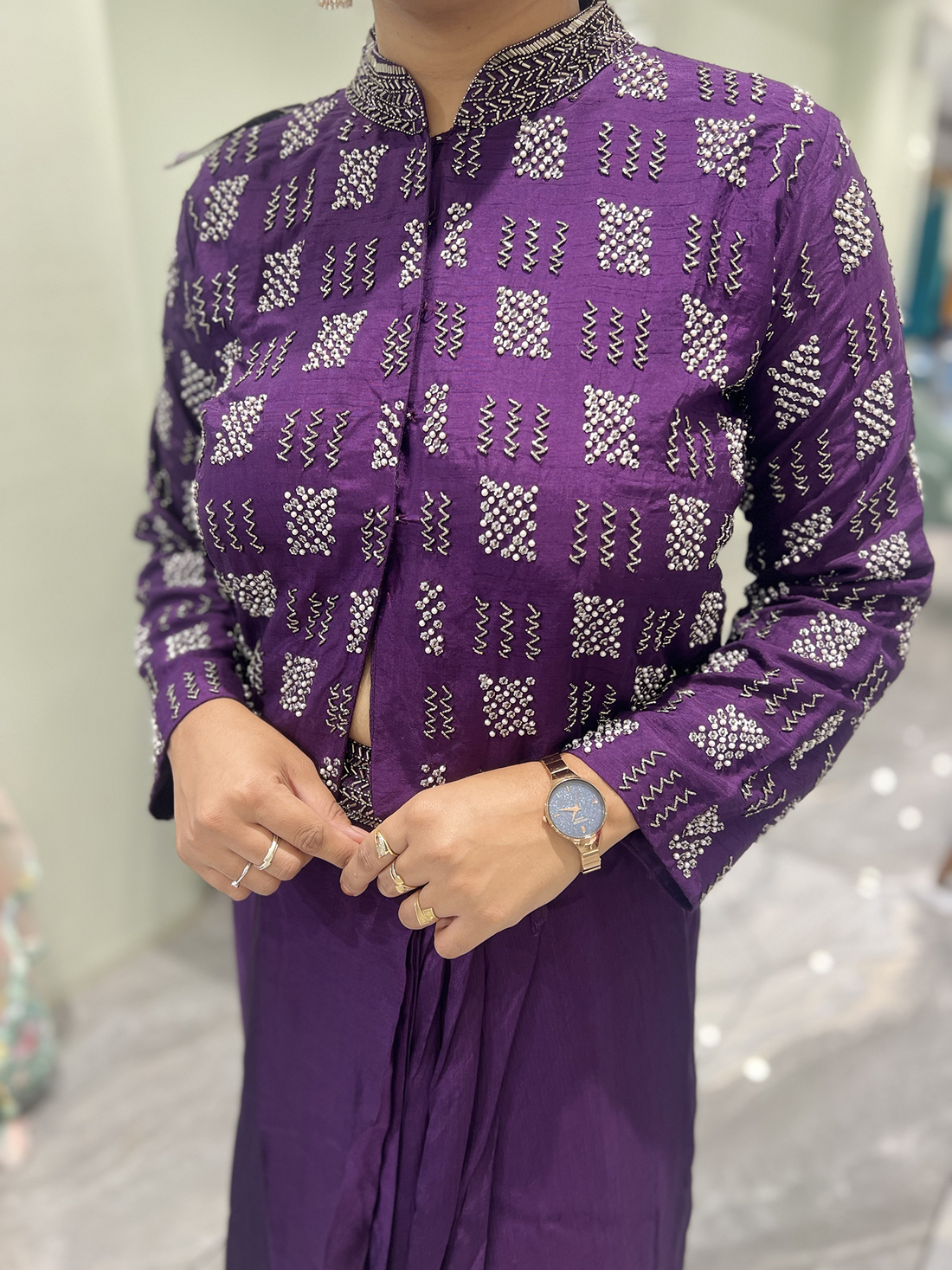 Purple Embroidery Chinone Indo Western - OMGORI MIX-2