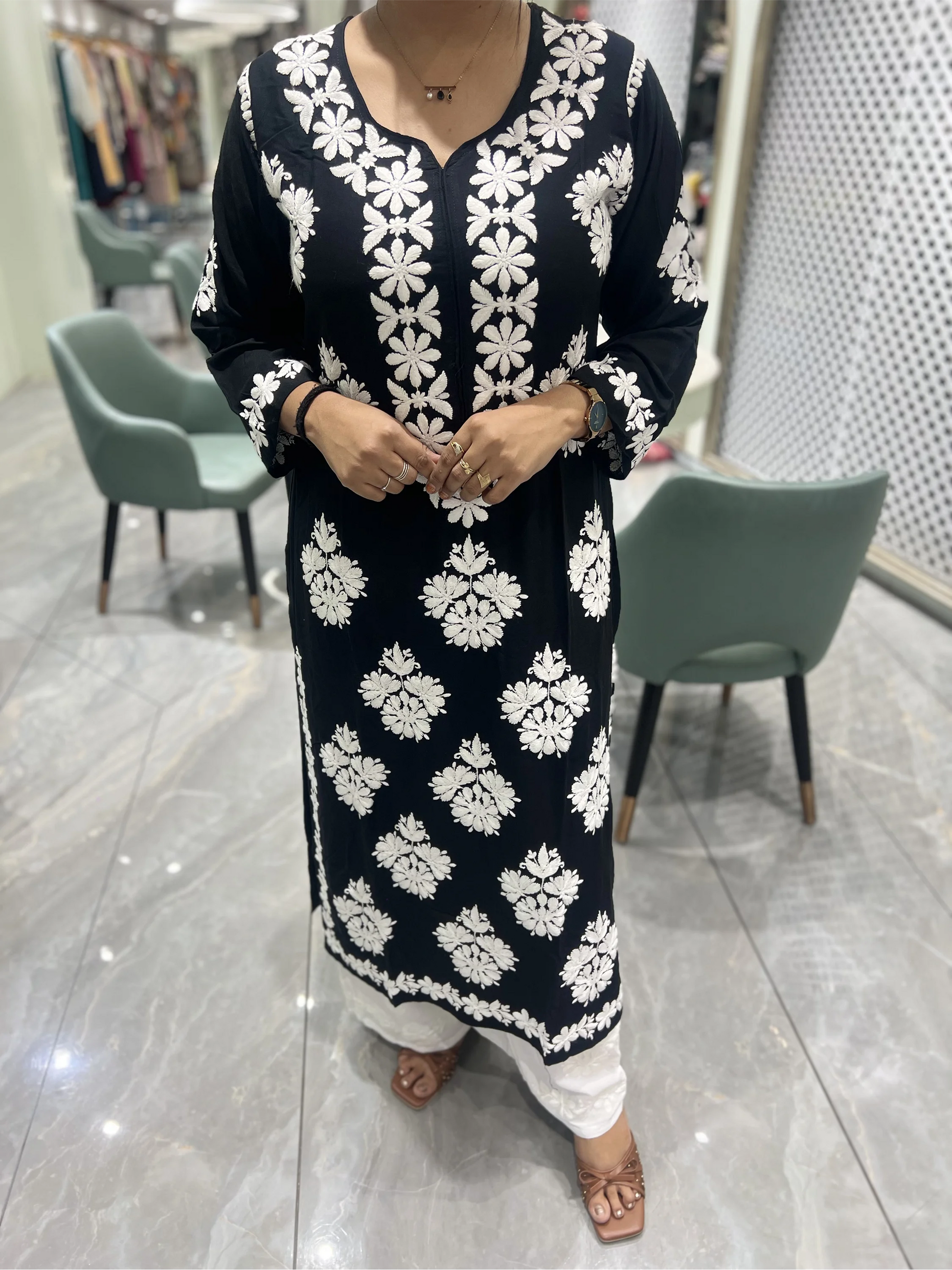Black Thread Work Reyon Two Piece - FALAK G 39