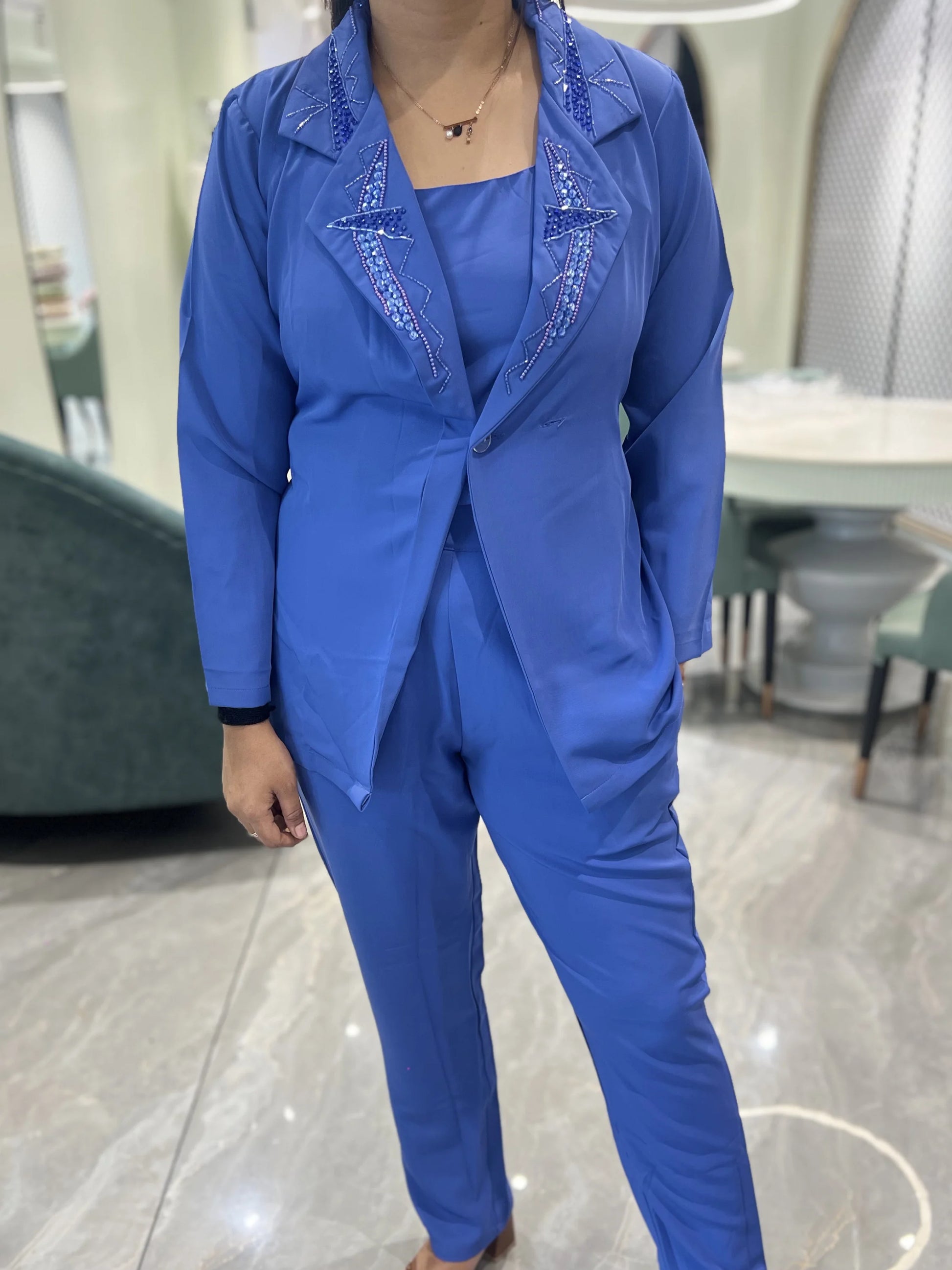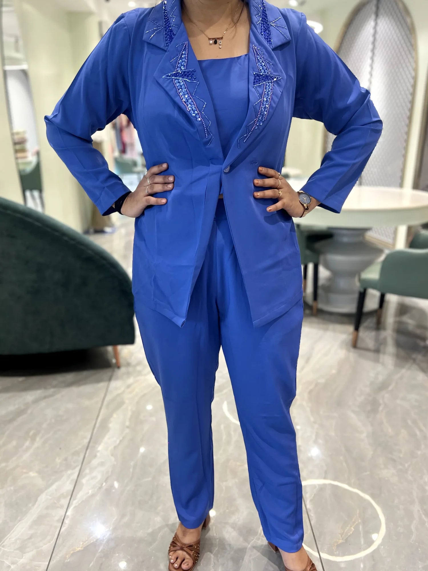This blue roman silk cordset is crafted with fine hand work detailing. It is designed to bring out elegance and grace, making it perfect for weddings, receptions, parties, and festive occasions. Made with high-quality roman silk fabric, this attire ensures comfort while maintaining a premium look. The intricate hand work work enhances its appeal, giving it a sophisticated finish. Ideal for those who appreciate traditional craftsmanship with a modern touch.