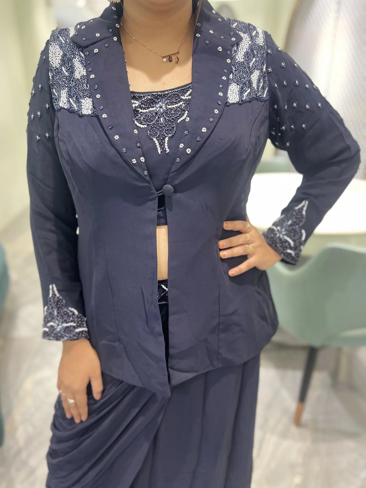 Navy Blue Hand Work Rayon Indo Western - OMGORI 978 1