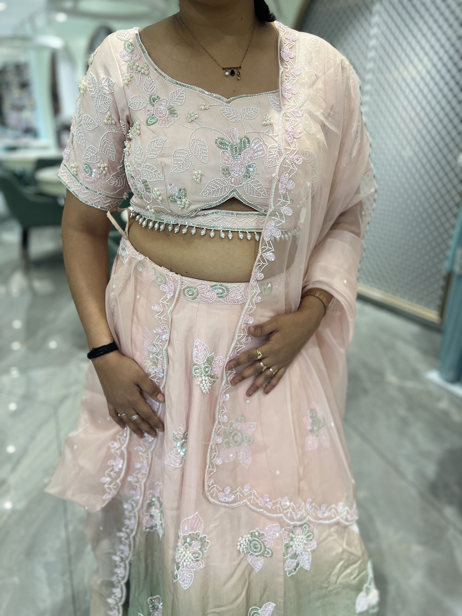 This pink silk crop top is crafted with fine hand work detailing. It is designed to bring out elegance and grace, making it perfect for weddings, receptions, parties, and festive occasions. Made with high-quality silk fabric, this attire ensures comfort while maintaining a premium look. The intricate hand work work enhances its appeal, giving it a sophisticated finish. Ideal for those who appreciate traditional craftsmanship with a modern touch.